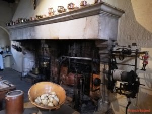 A gyógyszertár – korábban Rolin özvegyének a szobája – falai mentén a gyönyörű fajansz tárolóedényekkel teli üveges szekrények állnak. A formájuk szerint tartalmaztak valamilyen gyógyító vizet, szirupot, pirulákat vagy balzsamot. A szintén is sorakozó üvegedények némelyike igen furcsa hozzávalókat tartalmaz, úgy mint pl. mályvacukor-por, szürke ámbra, abszint-só. Középen egy óriási mozsár áll, amlelyet valóban használtak is.