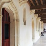 Az északi, keleti és nyugati oldalon kétszintű galériát láthatunk, amelyet a földszinten kőoszlopok, az első emeleten fa gerendák tartanak. A tetőablakokon finom fa- és vasmunka látható. Az udvar közepén egy gótikus vasalattal ellátott kút is található.