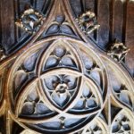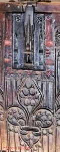 Késő gótikus rózsaablakokról kölcsönözte az ügyes kezű művész ennek a ruhásládának a fő díszítő motívumait.