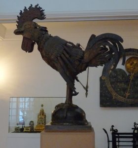Lent egy 86 cm átmérőjű éggömb állt, egy pelikán figurával, és össze volt kapcsolva az óraművel, Fent a kupola tetején az első kakas aranyozott utódja szórakoztatta a nézőket minden délben