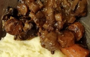 Igazi nagyfazekas, vasárnapi ebédnekvaló. Omlós marhahús, gazdag vörösboros, zöldséges szószban, nálunk krumplipürével.